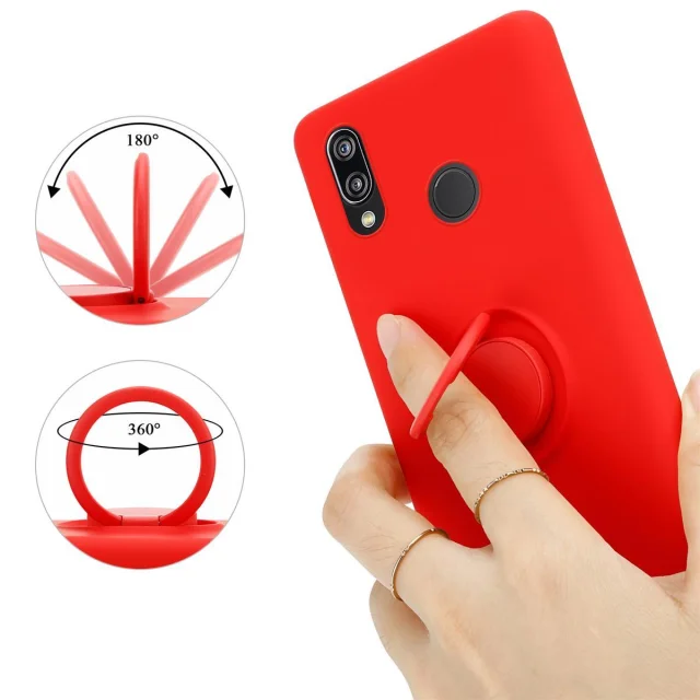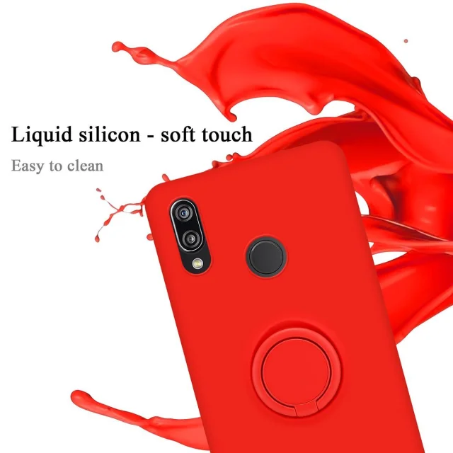 CADORABO Ohišje, združljiv s Huawei v tekoči rdeči barvi - zaščitni pokrov iz fleksibilnega silikona TPU z obročem