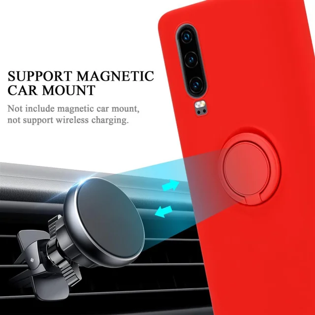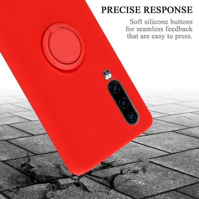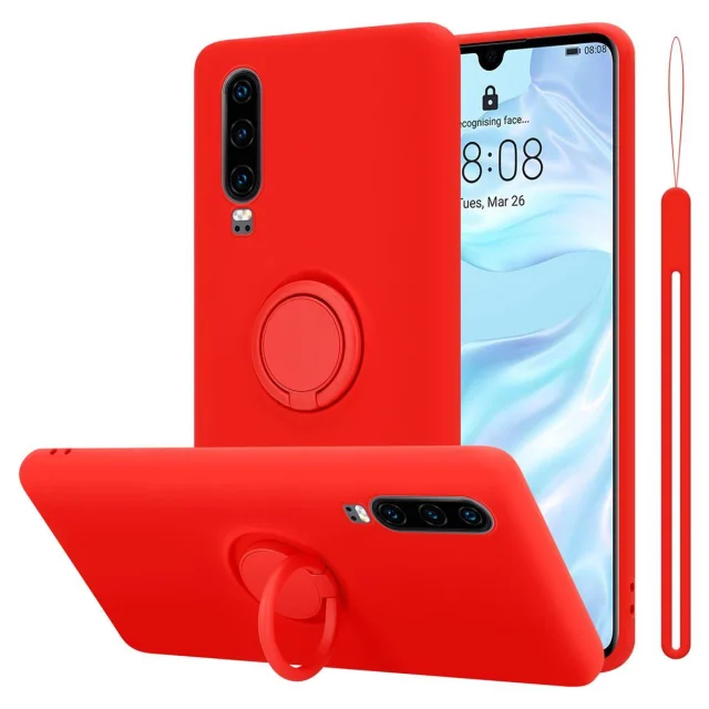 CADORABO Ohišje, združljiv s Huawei v tekoči rdeči barvi - zaščitni pokrov iz fleksibilnega silikona TPU z obročem