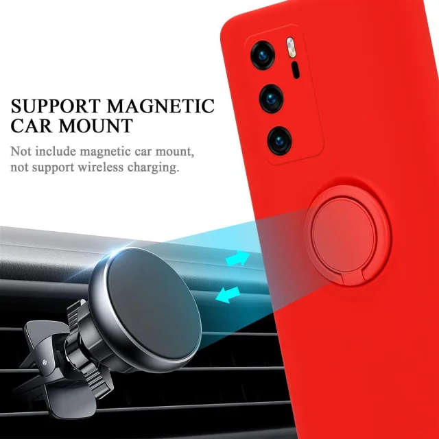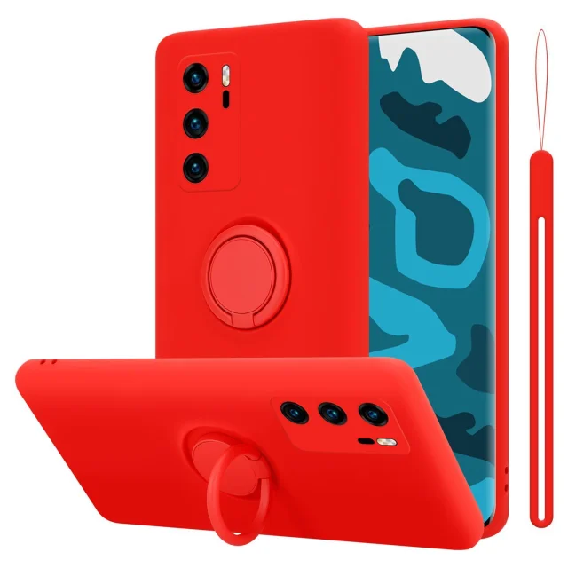 CADORABO Ohišje, združljiv s Huawei v tekoči rdeči barvi - zaščitni pokrov iz fleksibilnega silikona TPU z obročem