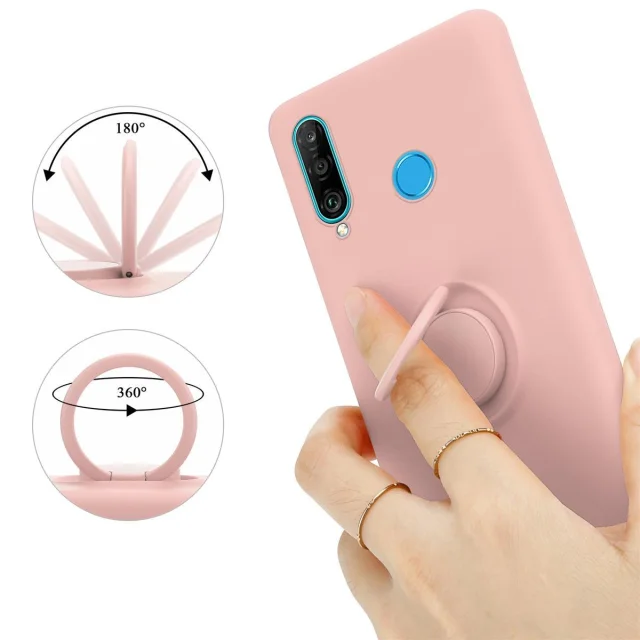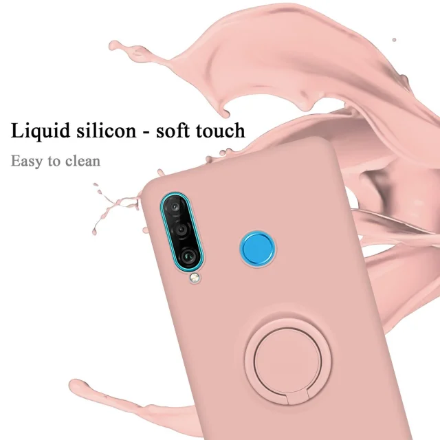 CADORABO Ohišje, združljiv s Huawei v tekoči roza barvi - zaščitni pokrov iz fleksibilnega silikona TPU z obročem