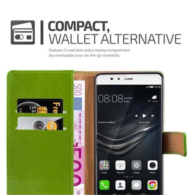 CADORABO Ohišje, združljiv s Huawei v travniku Green - Zaščitni pokrov z magnetnim zapiranjem, stoječo funkcijo in režo za kartico