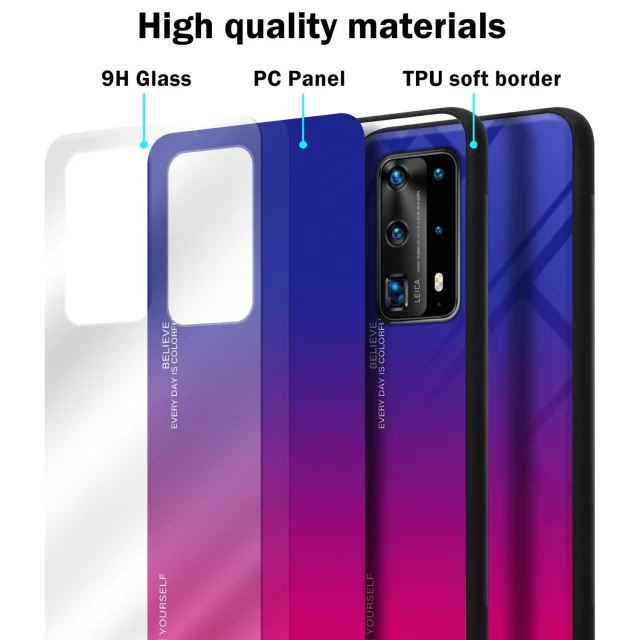 CADORABO Ohišje, združljiv s Huawei v vijolični - rdeči - dvobarvni zaščitni pokrov iz silikona TPU in hrbta iz kaljenega stekla