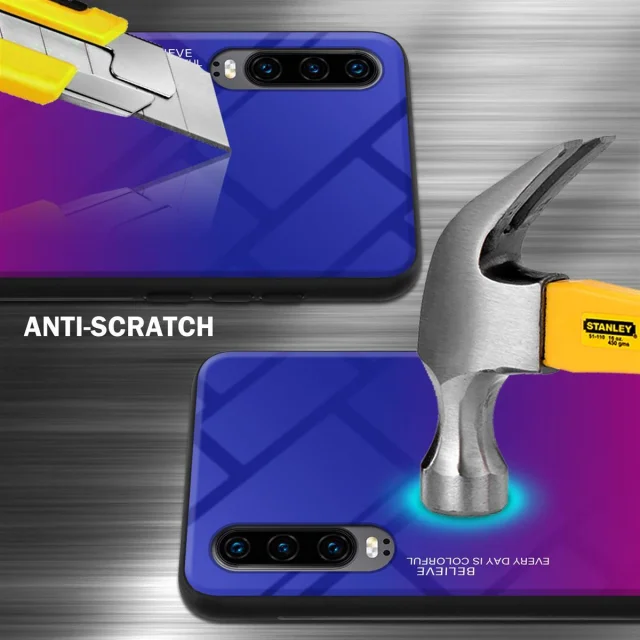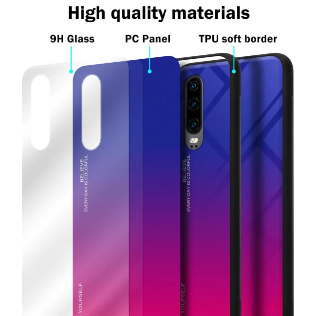 CADORABO Ohišje, združljiv s Huawei v vijolični - rdeči - dvobarvni zaščitni pokrov iz silikona TPU in hrbta iz kaljenega stekla
