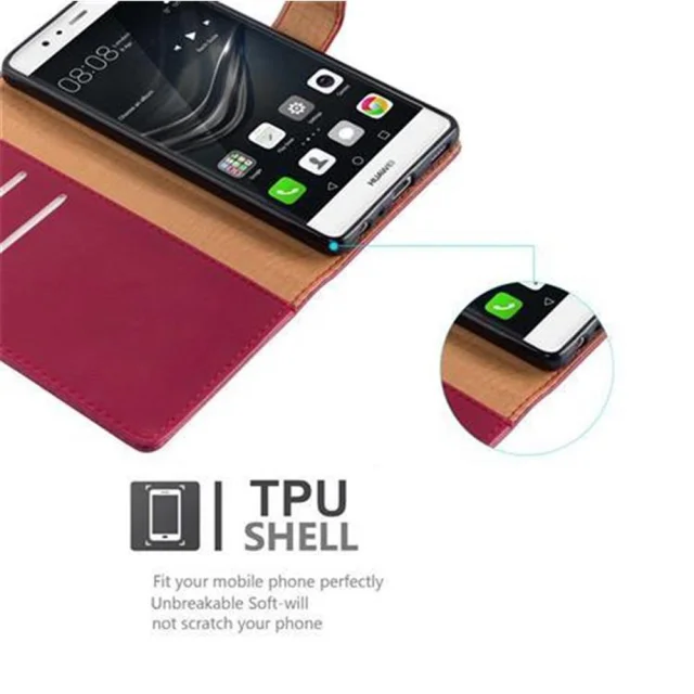 CADORABO Ohišje, združljiv s Huawei v vino rdeče - zaščitni pokrov z magnetnim zapiranjem, stoječo funkcijo in režo za kartico