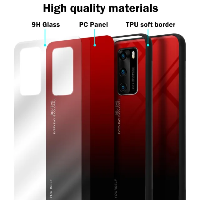 CADORABO Ohišje, združljiv s Huaweijem v rdeči barvi - črni - dvobarvni zaščitni pokrov iz silikona TPU in hrbta iz kaljenega stekla