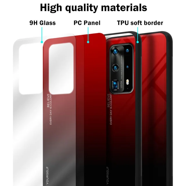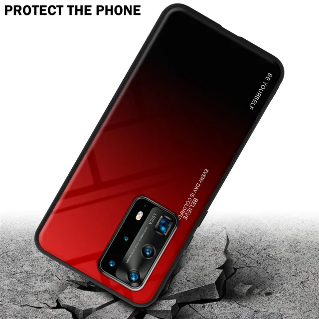 CADORABO Ohišje, združljiv s Huaweijem v rdeči barvi - črni - dvobarvni zaščitni pokrov iz silikona TPU in hrbta iz kaljenega stekla