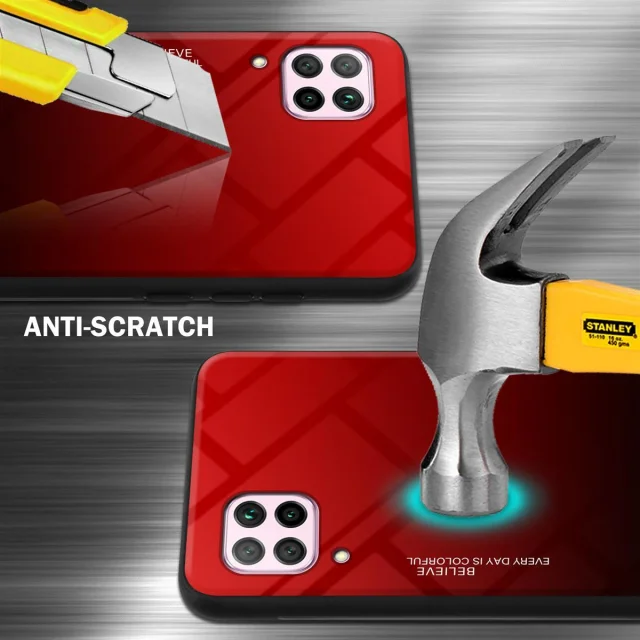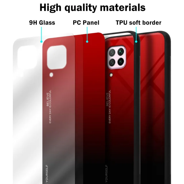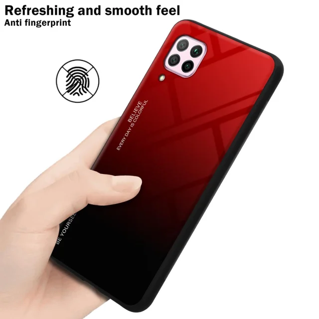 CADORABO Ohišje, združljiv s Huaweijem v rdeči barvi - črni - dvobarvni zaščitni pokrov iz silikona TPU in hrbta iz kaljenega stekla