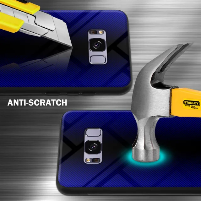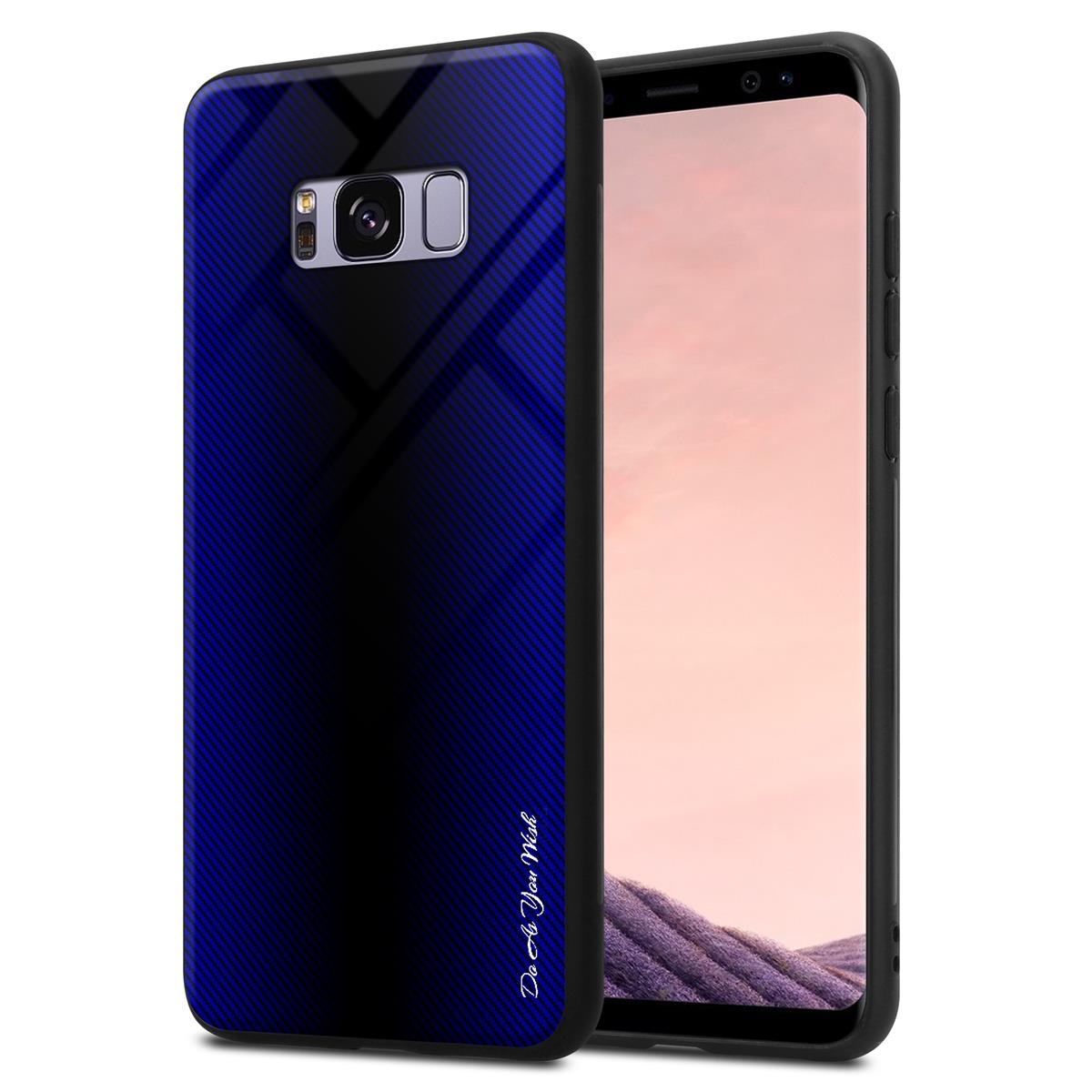 CADORABO Ohišje, združljiv s Samsung - Stripe Optics v kobaltu vijolični - zaščitni pokrov iz silikona TPU in hrbta iz kaljenega stekla