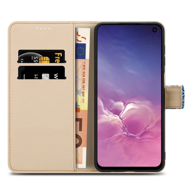 CADORABO Ohišje, združljiv s Samsungom - Design Blue Mandala št. 1 - Zaščitni pokrov z magnetnim zapiranjem, funkcijo stojala in režo za kartico
