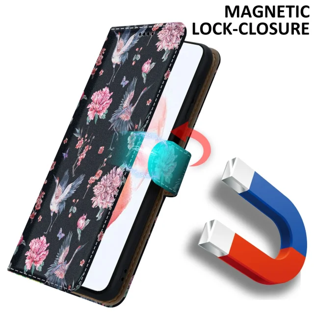CADORABO Ohišje, združljiv s Samsungom - Design Crane & Flowers št. 9 - Zaščitni pokrov z magnetnim zapiranjem, funkcijo stojala in režo za kartico
