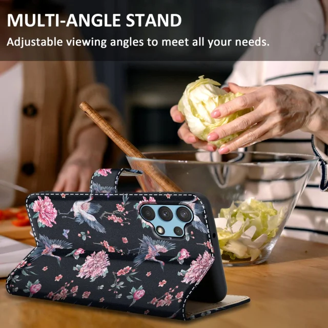 CADORABO Ohišje, združljiv s Samsungom - Design Crane & Flowers št. 9 - Zaščitni pokrov z magnetnim zapiranjem, funkcijo stojala in režo za kartico