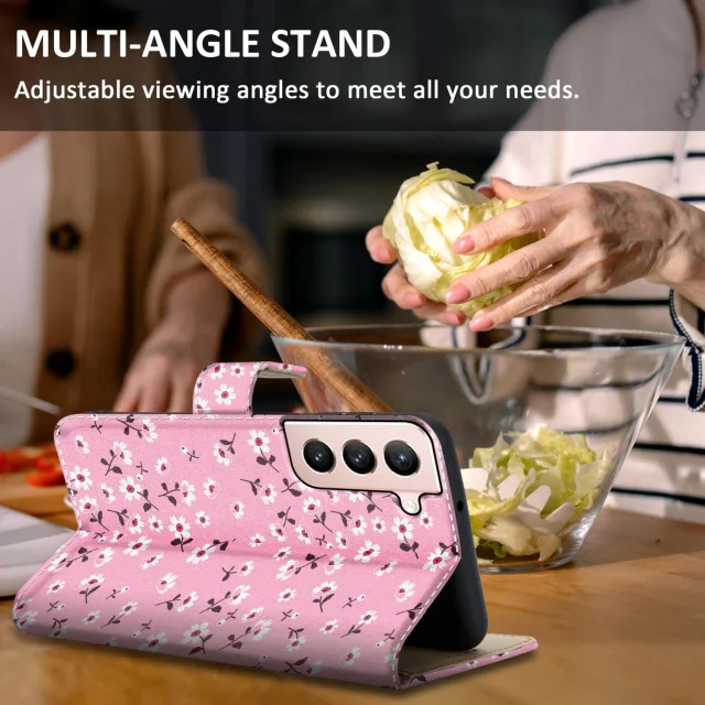 CADORABO Ohišje, združljiv s Samsungom - Design Flower Rain št. 6 - Zaščitni pokrov z magnetnim zapiranjem, funkcijo stojala in režo za kartico