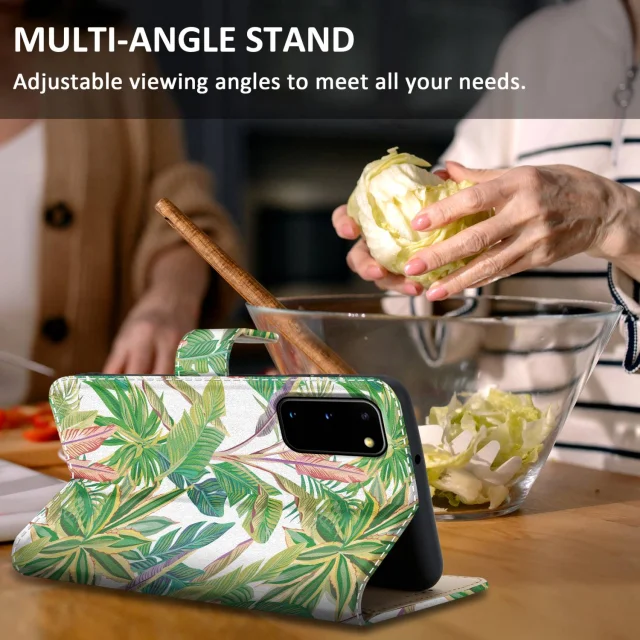 CADORABO Ohišje, združljiv s Samsungom - Design Green Rainforest št. 8 - Zaščitni pokrov z magnetnim zapiranjem, funkcijo stojala in režo za kartico