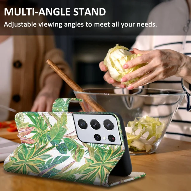 CADORABO Ohišje, združljiv s Samsungom - Design Green Rainforest št. 8 - Zaščitni pokrov z magnetnim zapiranjem, funkcijo stojala in režo za kartico