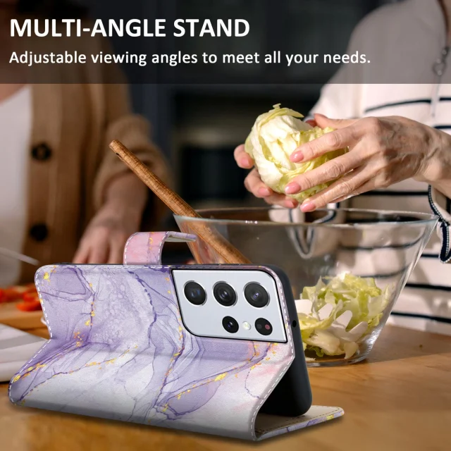 CADORABO Ohišje, združljiv s Samsungom - Design Pink Purple Marmor št. 5 - Zaščitni pokrov z magnetnim zapiranjem, funkcijo stojala in režo za kartico