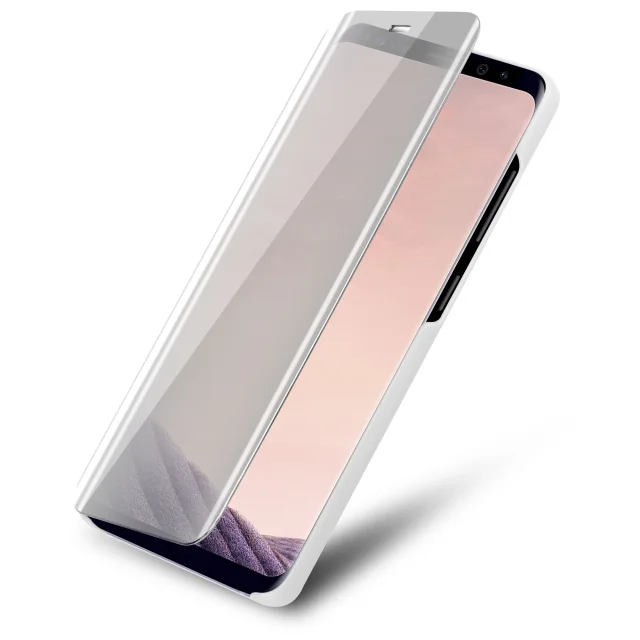 CADORABO Ohišje, združljiv s Samsungom v Agate Silver - Clear View Zrcalo Zaščitni pokrov s funkcijo stojala 360 stopinj zaščita