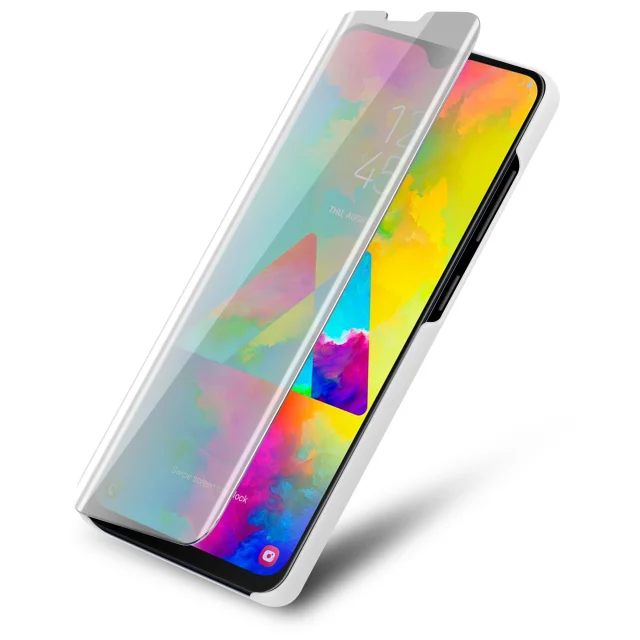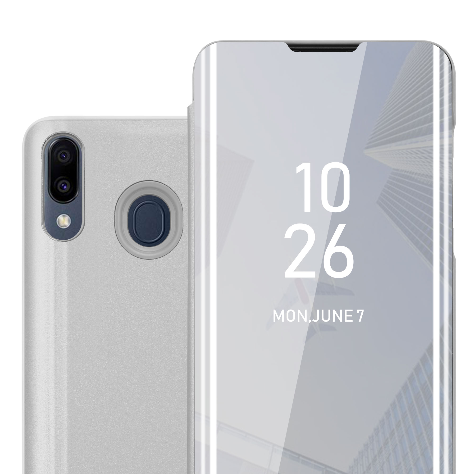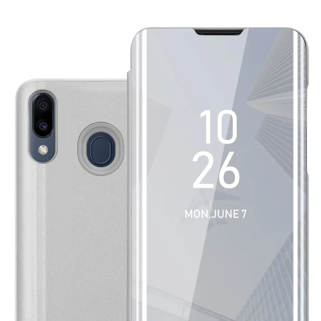 CADORABO Ohišje, združljiv s Samsungom v Agate Silver - Clear View Zrcalo Zaščitni pokrov s funkcijo stojala 360 stopinj zaščita