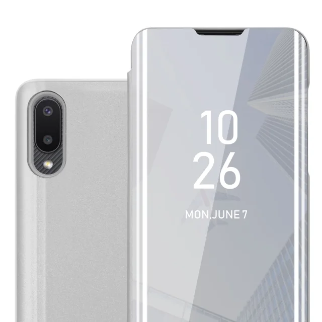 CADORABO Ohišje, združljiv s Samsungom v Agate Silver - Clear View Zrcalo Zaščitni pokrov s funkcijo stojala 360 stopinj zaščita
