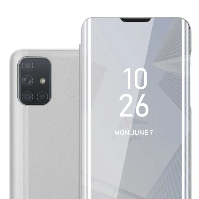CADORABO Ohišje, združljiv s Samsungom v Agate Silver - Clear View Zrcalo Zaščitni pokrov s funkcijo stojala 360 stopinj zaščita