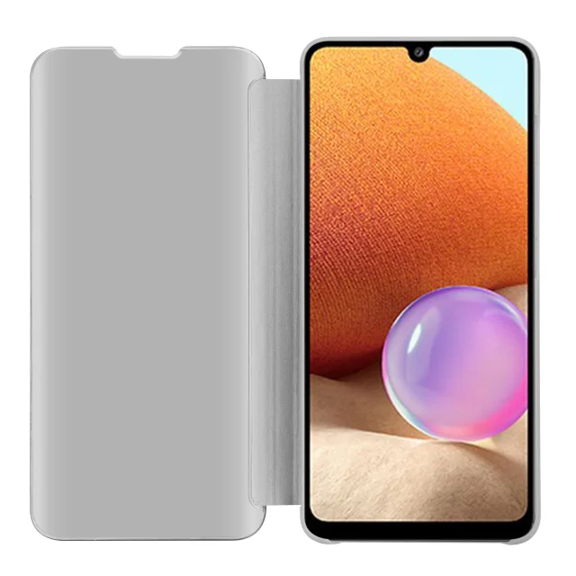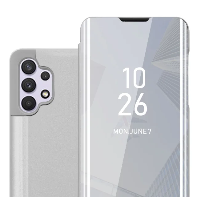 CADORABO Ohišje, združljiv s Samsungom v Agate Silver - Clear View Zrcalo Zaščitni pokrov s funkcijo stojala 360 stopinj zaščita