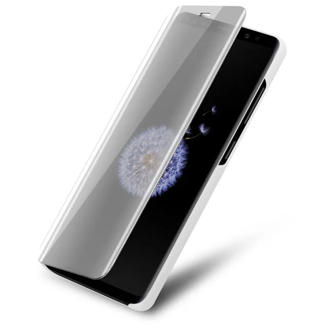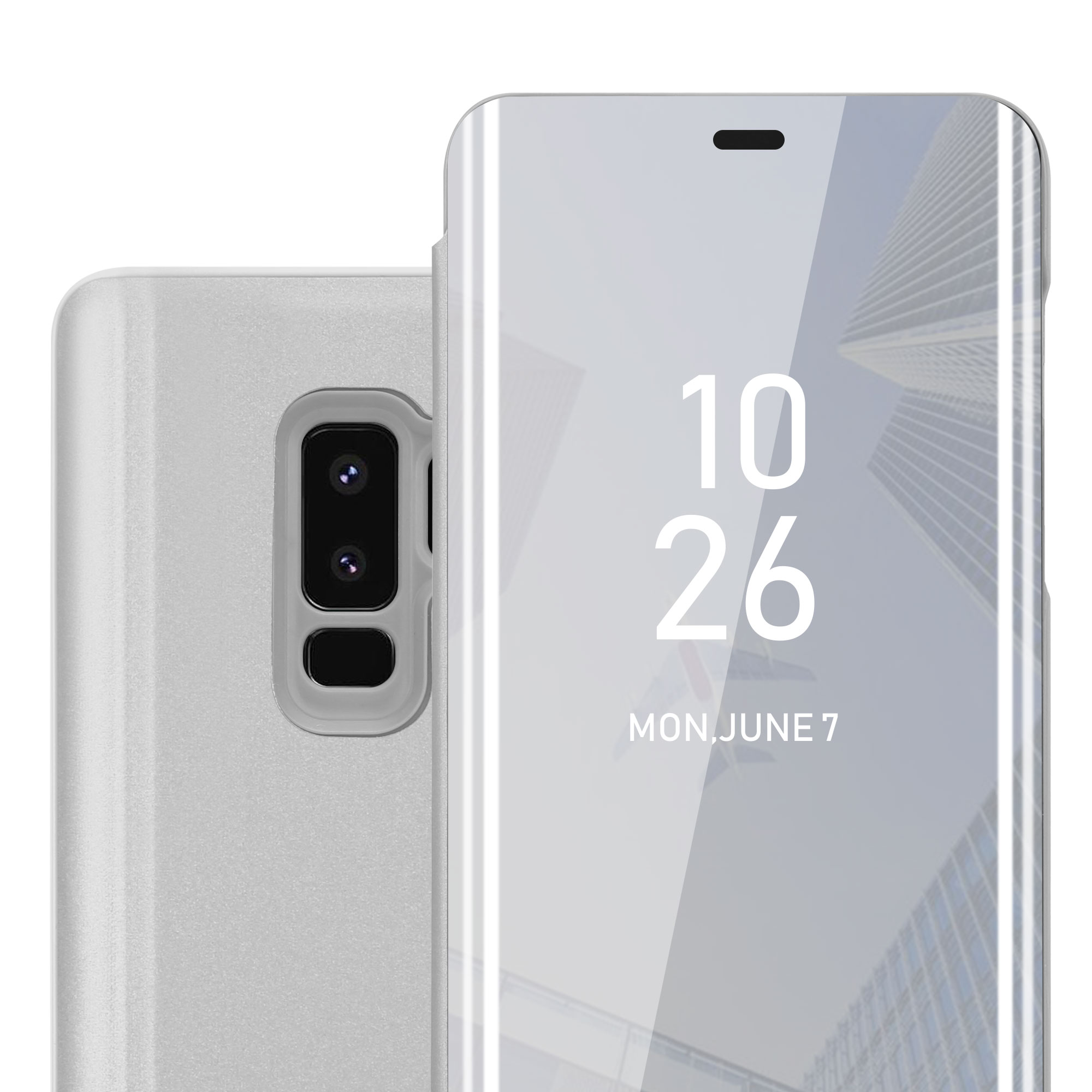 CADORABO Ohišje, združljiv s Samsungom v Agate Silver - Clear View Zrcalo Zaščitni pokrov s funkcijo stojala 360 stopinj zaščita