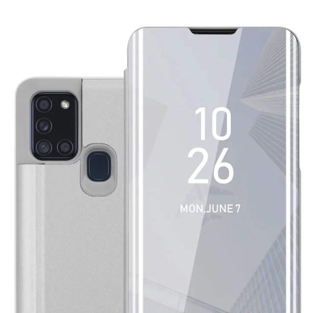 CADORABO Ohišje, združljiv s Samsungom v Agate Silver - Clear View Zrcalo Zaščitni pokrov s funkcijo stojala 360 stopinj zaščita