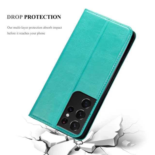 CADORABO Ohišje, združljiv s Samsungom v bencinski turkiznici - zaščitni pokrov z magnetnim zapiranjem, stoječo funkcijo in režo za kartico