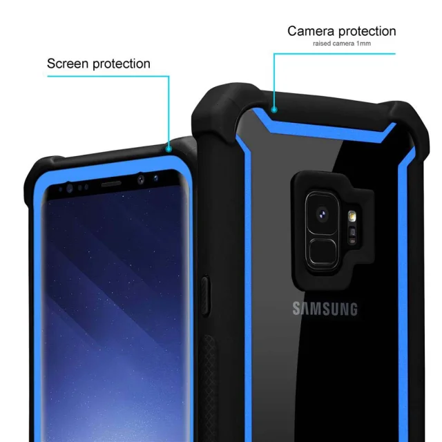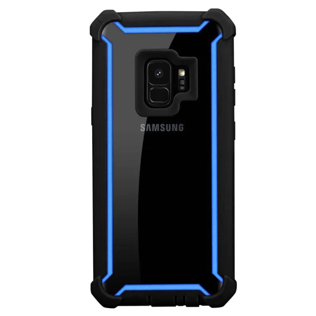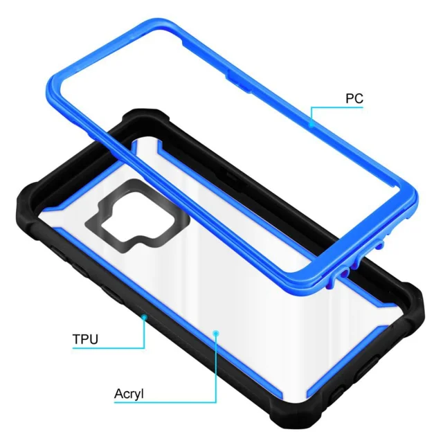 CADORABO Ohišje, združljiv s Samsungom v Blue Black-2-in-1 zaščitni pokrov s silikonskim robom TPU in akrilnim steklenim hrbtom
