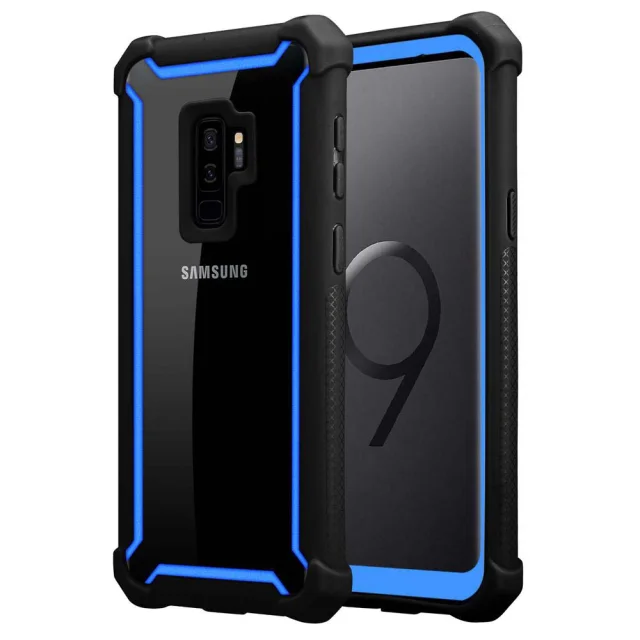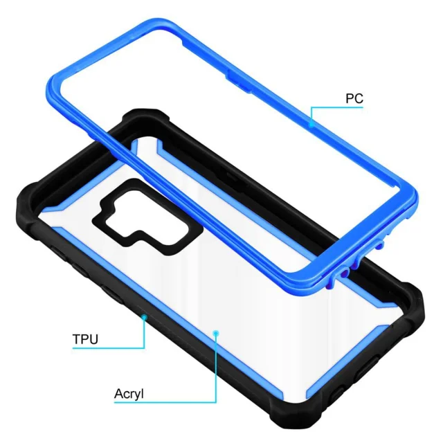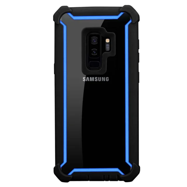 CADORABO Ohišje, združljiv s Samsungom v Blue Black-2-in-1 zaščitni pokrov s silikonskim robom TPU in akrilnim steklenim hrbtom