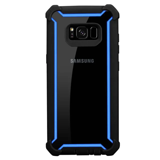 CADORABO Ohišje, združljiv s Samsungom v Blue Black-2-in-1 zaščitni pokrov s silikonskim robom TPU in akrilnim steklenim hrbtom