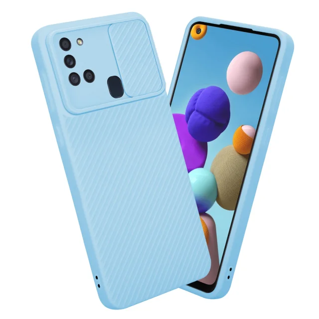 CADORABO Ohišje, združljiv s Samsungom v Bonbon Light Blue - Zaščitni pokrov iz fleksibilnega silikona TPU in z zaščito pred kamero