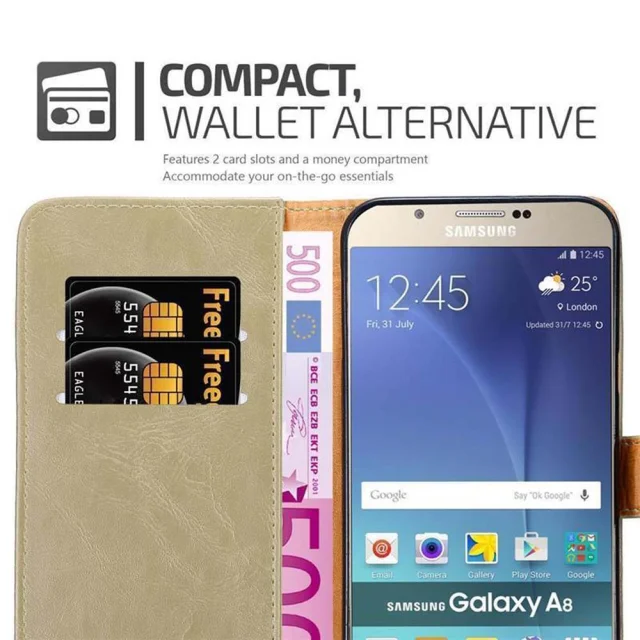 CADORABO Ohišje, združljiv s Samsungom v kapučino rjavi barvi - zaščitni pokrov z magnetnim zapiranjem, stoječo funkcijo in režo za kartico