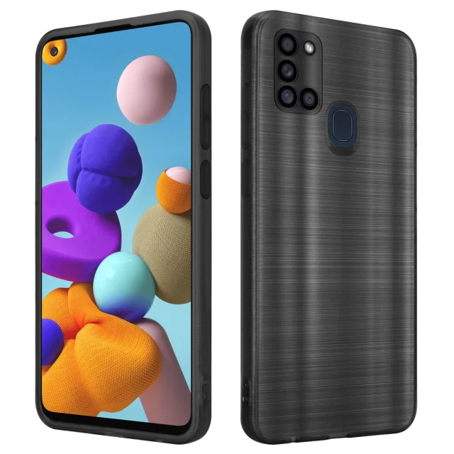 CADORABO Ohišje, združljiv s Samsungom v krtačenem črnem - zaščitnem pokrovu, narejen iz fleksibilnega silikona TPU v brušenem dizajnu