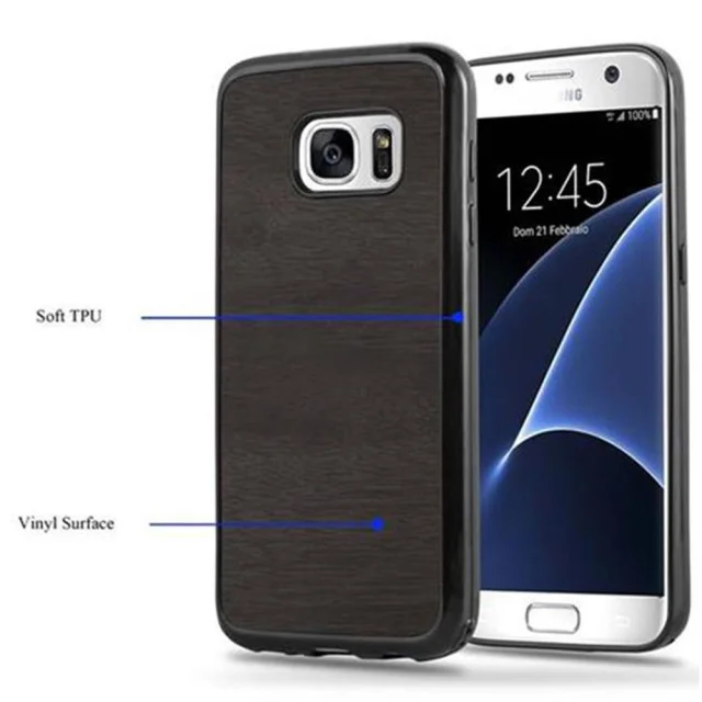 CADORABO Ohišje, združljiv s Samsungom v lesenem črnem - zaščitnem pokrovu, narejen iz fleksibilnega silikona TPU