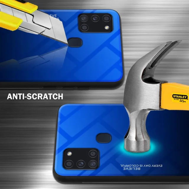 CADORABO Ohišje, združljiv s Samsungom v modri barvi - črni - dvobarvni zaščitni pokrov iz silikona TPU in hrbta iz kaljenega stekla