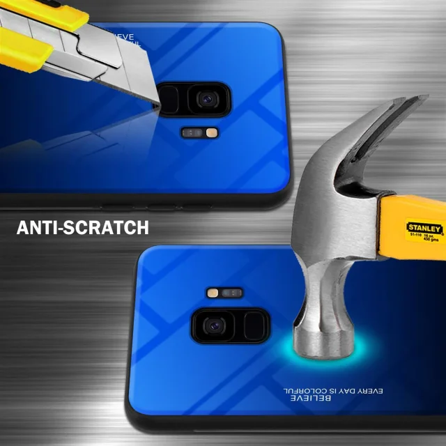 CADORABO Ohišje, združljiv s Samsungom v modri barvi - črni - dvobarvni zaščitni pokrov iz silikona TPU in hrbta iz kaljenega stekla