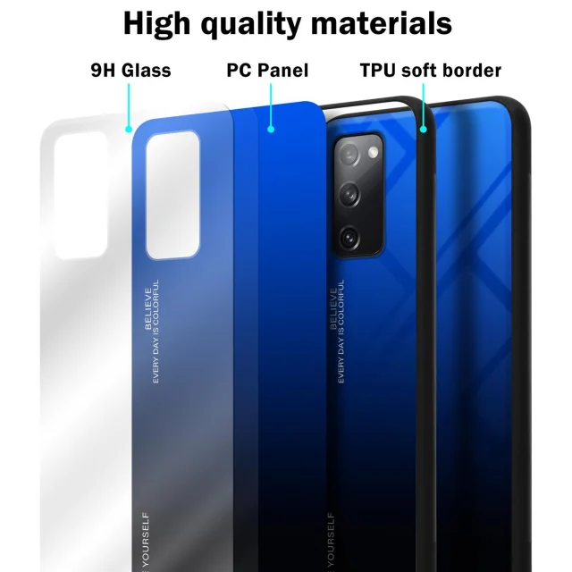 CADORABO Ohišje, združljiv s Samsungom v modri barvi - črni - dvobarvni zaščitni pokrov iz silikona TPU in hrbta iz kaljenega stekla