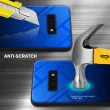 CADORABO Ohišje, združljiv s Samsungom v modri barvi - črni - dvobarvni zaščitni pokrov iz silikona TPU in hrbta iz kaljenega stekla