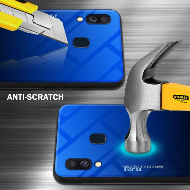 CADORABO Ohišje, združljiv s Samsungom v modri barvi - črni - dvobarvni zaščitni pokrov iz silikona TPU in hrbta iz kaljenega stekla
