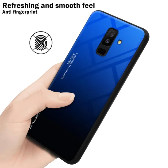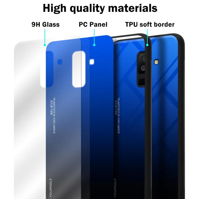 CADORABO Ohišje, združljiv s Samsungom v modri barvi - črni - dvobarvni zaščitni pokrov iz silikona TPU in hrbta iz kaljenega stekla