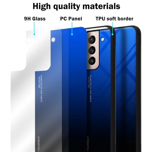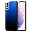 CADORABO Ohišje, združljiv s Samsungom v modri barvi - črni - dvobarvni zaščitni pokrov iz silikona TPU in hrbta iz kaljenega stekla