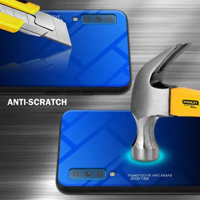 CADORABO Ohišje, združljiv s Samsungom v modri barvi - črni - dvobarvni zaščitni pokrov iz silikona TPU in hrbta iz kaljenega stekla
