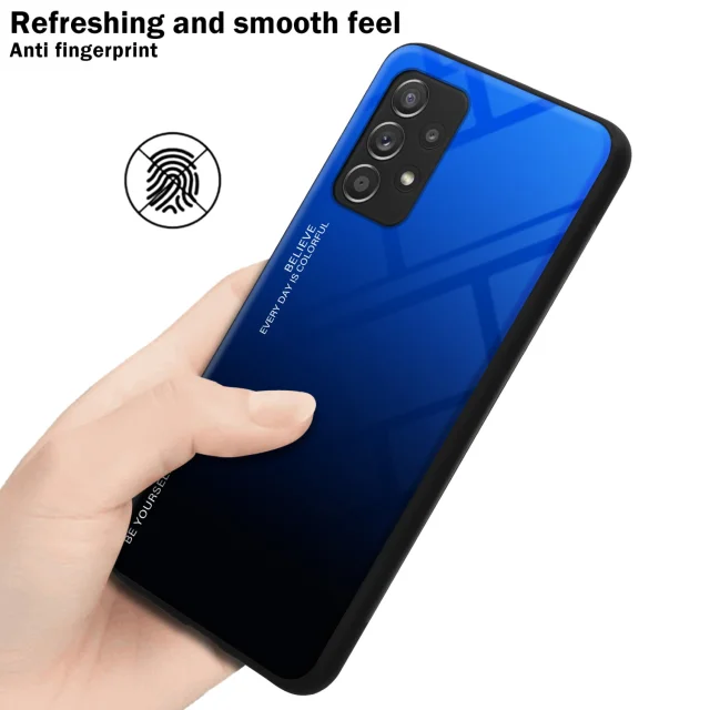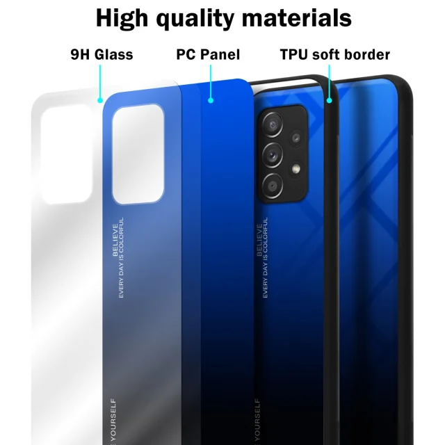 CADORABO Ohišje, združljiv s Samsungom v modri barvi - črni - dvobarvni zaščitni pokrov iz silikona TPU in hrbta iz kaljenega stekla