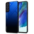 CADORABO Ohišje, združljiv s Samsungom v modri barvi - črni - dvobarvni zaščitni pokrov iz silikona TPU in hrbta iz kaljenega stekla