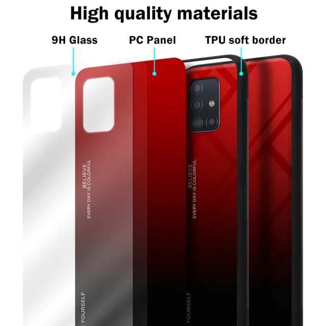 CADORABO Ohišje, združljiv s Samsungom v rdeči barvi - črni - dvobarvni zaščitni pokrov iz silikona TPU in hrbta iz kaljenega stekla