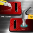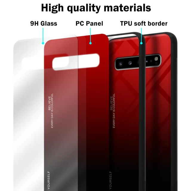 CADORABO Ohišje, združljiv s Samsungom v rdeči barvi - črni - dvobarvni zaščitni pokrov iz silikona TPU in hrbta iz kaljenega stekla
