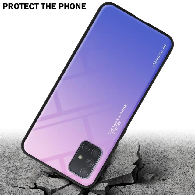 CADORABO Ohišje, združljiv s Samsungom v roza - modri - dvobarvni zaščitni pokrov iz silikona TPU in hrbta iz kaljenega stekla