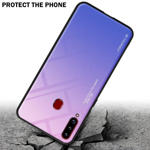 CADORABO Ohišje, združljiv s Samsungom v roza - modri - dvobarvni zaščitni pokrov iz silikona TPU in hrbta iz kaljenega stekla