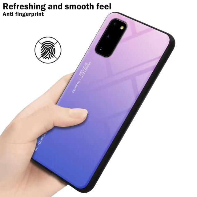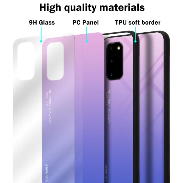 CADORABO Ohišje, združljiv s Samsungom v roza - modri - dvobarvni zaščitni pokrov iz silikona TPU in hrbta iz kaljenega stekla