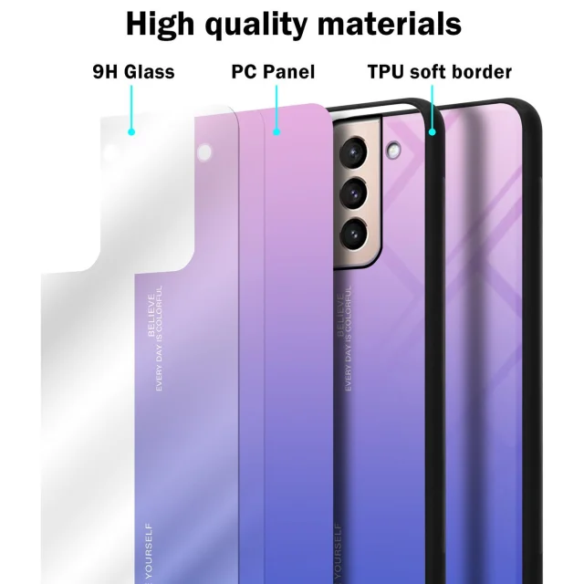 CADORABO Ohišje, združljiv s Samsungom v roza - modri - dvobarvni zaščitni pokrov iz silikona TPU in hrbta iz kaljenega stekla
